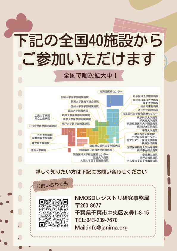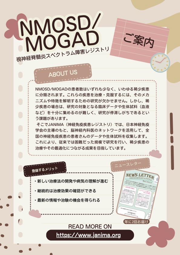 • 視神経脊髄炎スペクトラム障害レジストリについて(JANIMA運営)