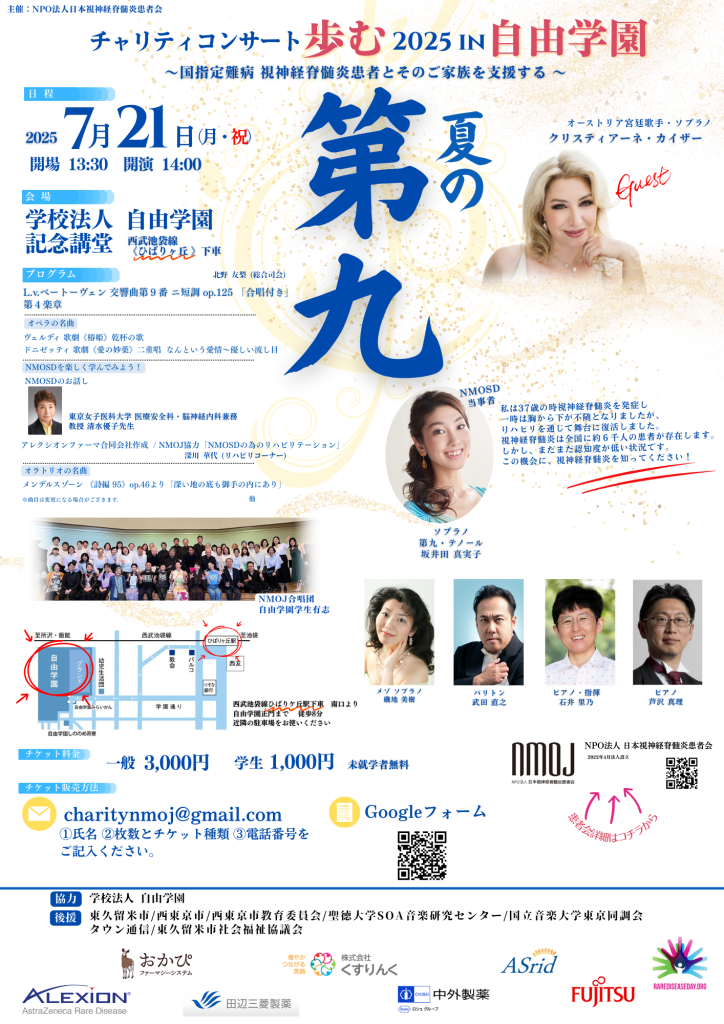 合唱団の参加費/収益金はNMOSD当事者を応援する活動として