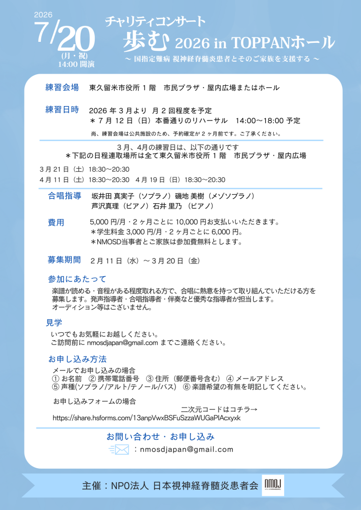 NMOSD当事者の方・ご家族は、今年も参加費無料です。
