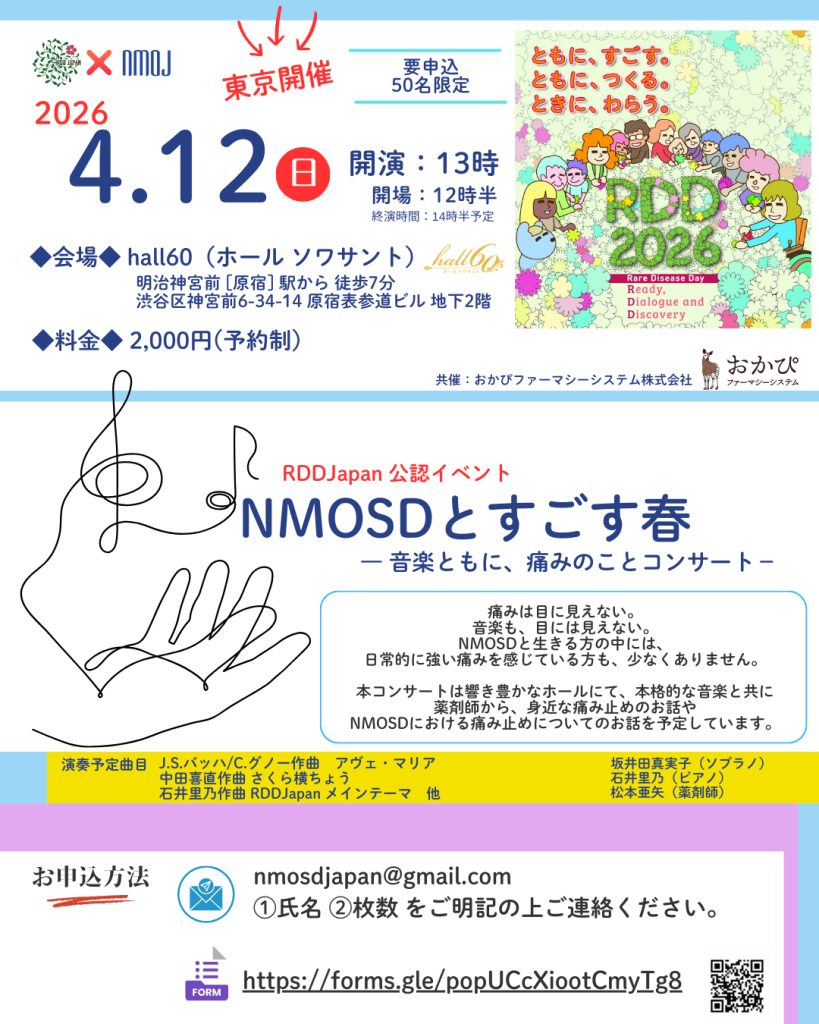 NMOSDにおける痛み止めについてのお話を予定しています。